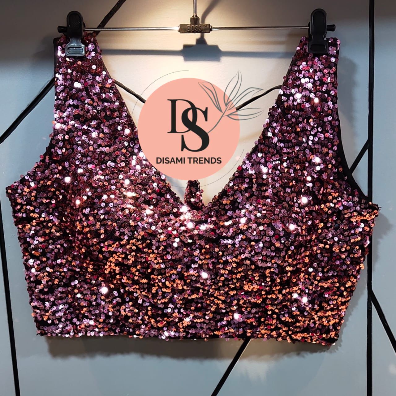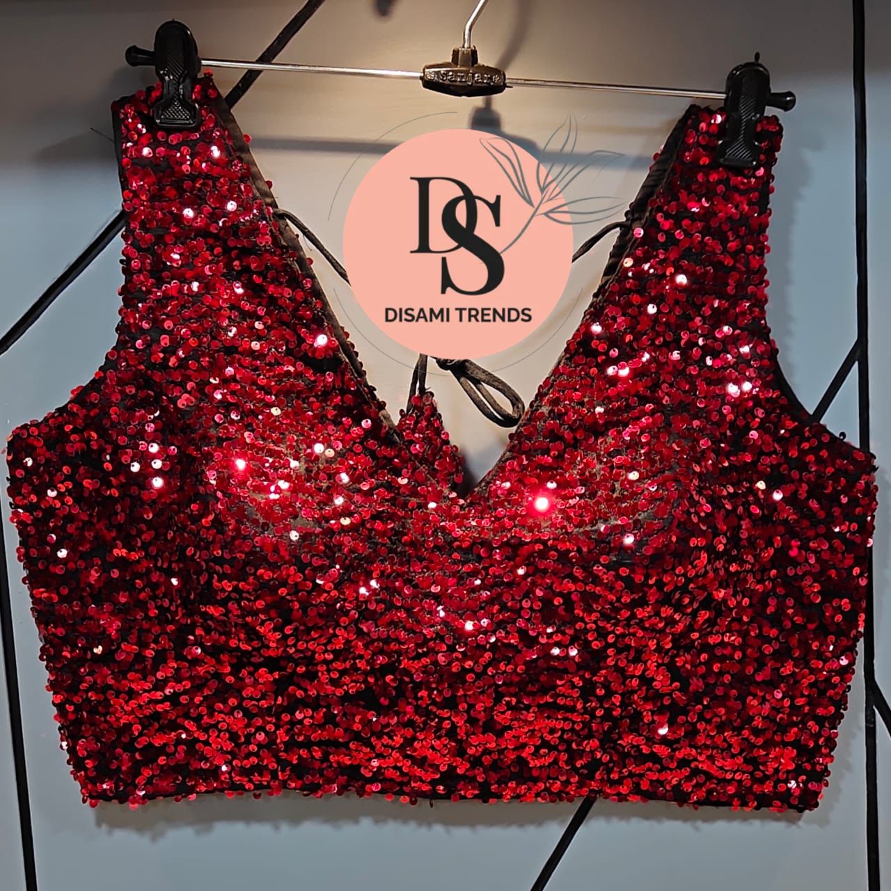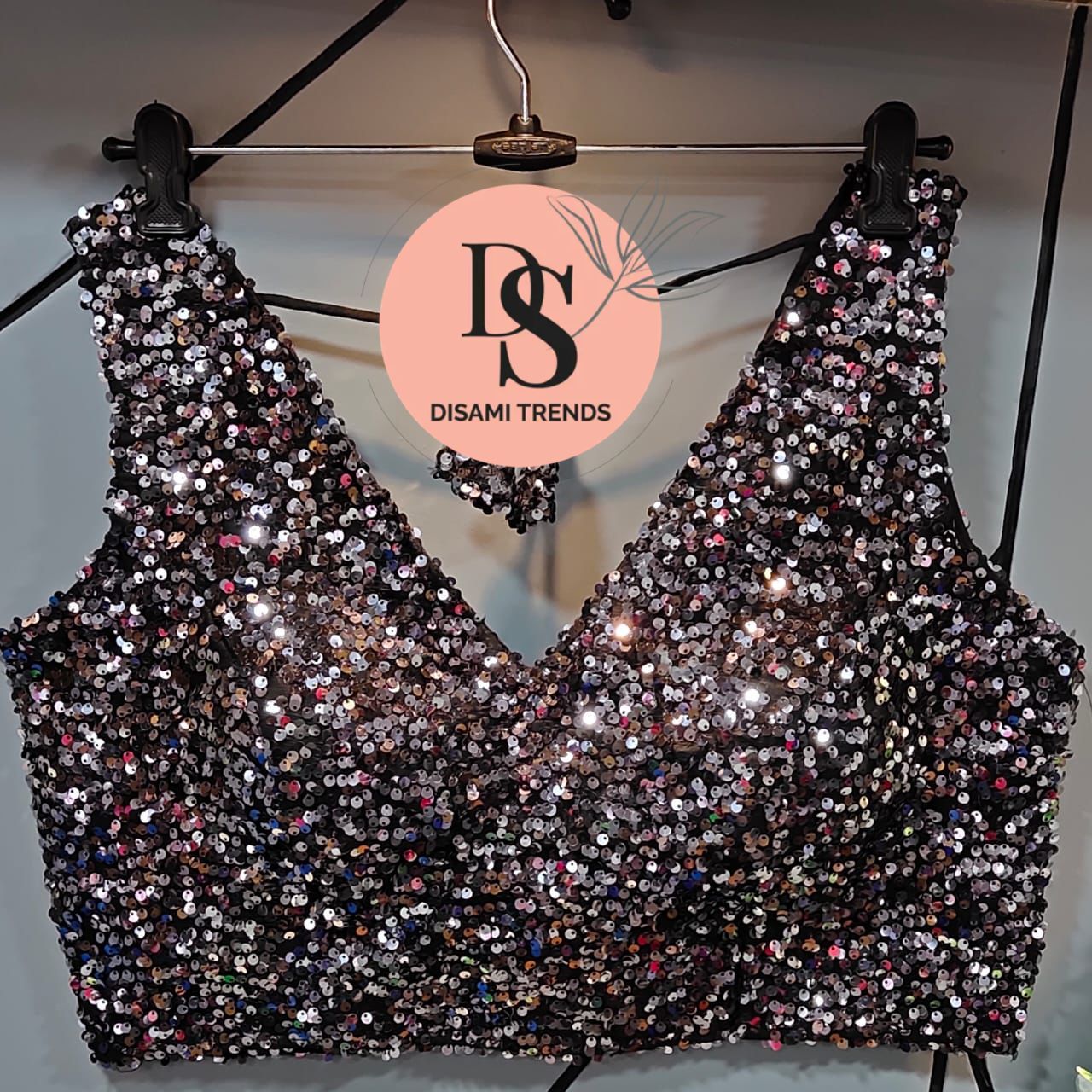 Disami Trends presents a beautiful fully sequinsed velvet blouse with attachable sleeves..